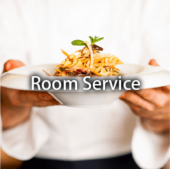 24時間対応でルームサービスを承っております。パスタ、カレー、ピザ、チャーハン、ポテトや枝豆などのおつまみ、デザートなどバラエティーに取り揃えております。更にメンバー様には特別価格にてご提供しております。